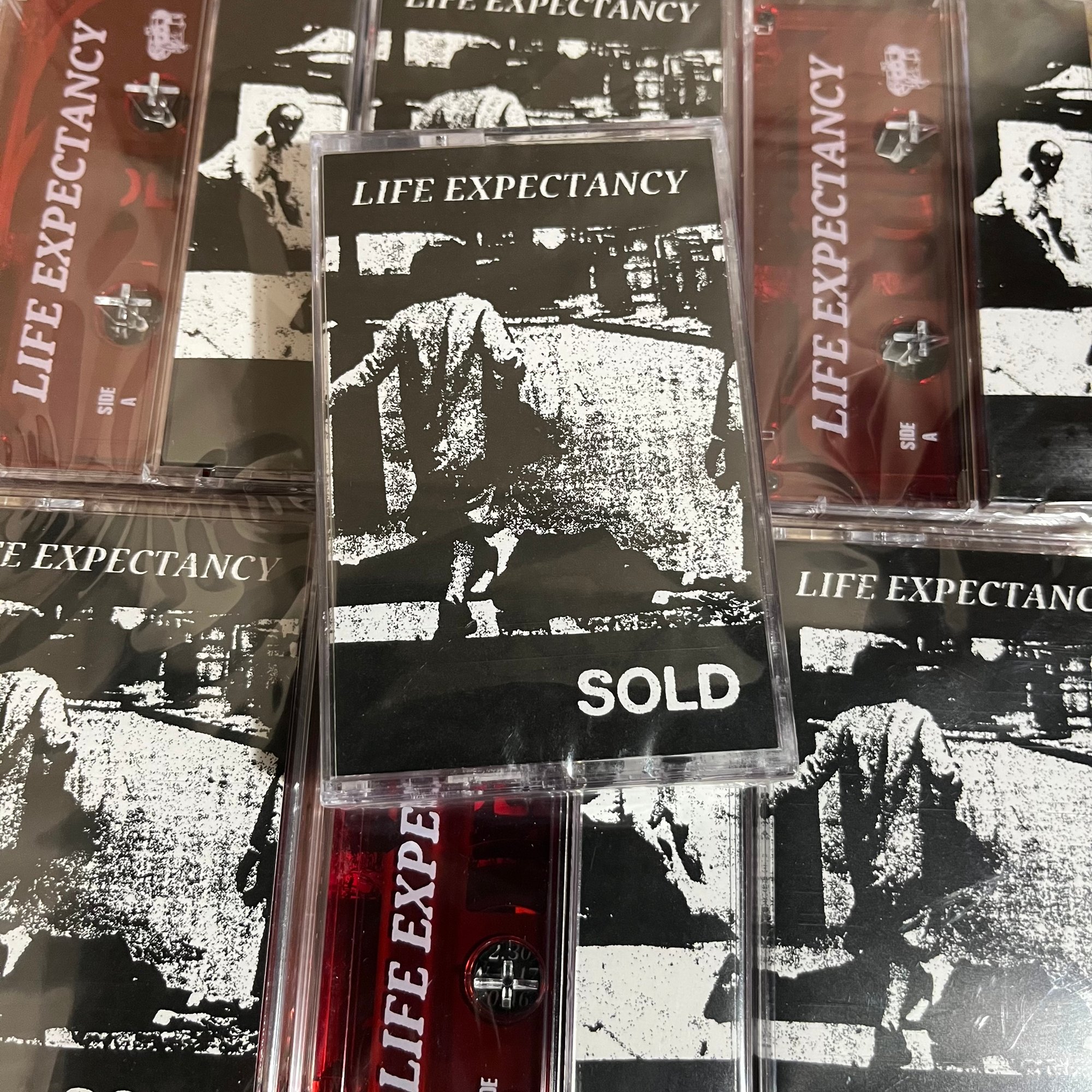 200 copies on pad printed red tint cassette shells housed in clear Norelco box with a 1/1 classic j-card sleeve. Recorded, mixed, mastered and art directed by LIFE EXPECTANCY.